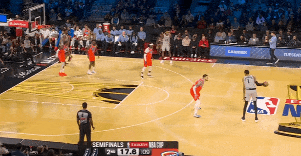 文班本场有很多为了留在下线协防位置,指挥队友执行无球换防的回合(尤其是面对五外时)。严格来讲,很多回合里文班并没有在防“某个球员”,而是在防“处于某个区域的球员”。